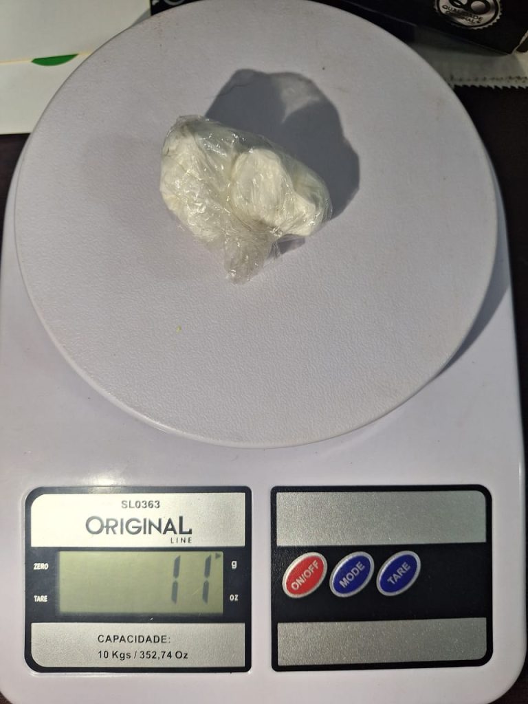 Questionado, o passageiro admitiu ser usuário e informou que, junto com o condutor, havia comprado a droga em Chapecó. Eles afirmaram que adquiriram 5 gramas cada, totalizando 11 gramas de pó branco dividido em duas embalagens plásticas. Segundo relato, os dois seguiam para Formosa do Sul, onde passariam o fim de semana.